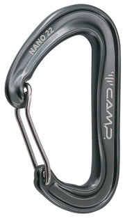 The evolution of the Nano continues. Following the popular Nano Wire and Nano 23, the new Nano 22 is even lighter, stronger, and more functional. The Nano 22 features a completely new design with a stronger open gate strength, a deeper basket for holding the rope in its proper position, and a refined gate for smooth, easy clipping. At 22 grams, the Nano 22 is the lightest fully-functional carabiner on the market with unique attributes that set it apart from other smaller carabiners. Like an inner working space large enough to use a clove hitch with ropes of any diameter, a gate opening wide enough for easy clipping on the sharp end, a profiled nose that slips in and out of tight chain links, and 8 colors for racking cams. As the trend towards lighter and faster, bigger and bolder continues, the Nano continues to set the standard for carabiners in the area of lightweight functionality.