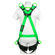• The harness comes with an energy-absorbing lanyard breakaway attachment (ensure ANSI compliance if removing the back pad) & leg strap retainers to use if needed.