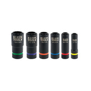 Six-piece set consisting of the commonly used impact socket sizes used in utility and construction work. Each impact socket features two coaxial spring-loaded sockets in one. The high-torque, 12-point design is easier to position on fasteners including square ones. Available in a convenient carrying case.