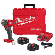 The M18 FUEL™ 1/2" Compact Impact Wrench w/ Pin Detent is the most compact in its class, delivering you more power, the most access in tight spaces at only 4.9" in length, and maximum workspace visibility. This cordless impact wrench features a POWERSTATE™ Brushless motor that generates up to 250 ft-lbs of fastening and nut-busting torque, providing you with the power required for installation and removal, even in confined spaces. The MILWAUKEE® 1/2" impact wrench has tri-LEDs that surround the anvil to deliver brighter light with fewer shadows. 4-Mode DRIVE CONTROL™ offers greater precision with a range of pre-set RPM and IPM levels, selectable from a single button on the tool. By selecting Mode 4, AUTO SHUT-OFF™ control applies no more than 20 ft-lbs of torque for hand-tight fastening applications to prevent overtightening. Mode 4 also features Bolt Removal Control delivers full torque output, then decreases RPMs once the bolt is loosened to prevent fastener drops. REDLINK PLUS™ Intelligence electronics make these controls possible while ensuring maximum performance, protecting the tool against overloads, over-heating, and over-discharge. The M18™ REDLITHIUM™ battery pack (not included) fits M18™ tools, delivering more work per charge and more work over the life of the pack.