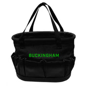 Features 13 outside tool pockets, nylon web carry handles, and molded top ring.